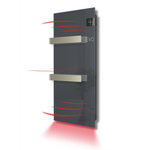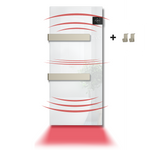 • Corps en métal peint à poudre et résistant à l’humidité. Surface frontale en verre trempé• Double système de chauffage: rayonnement pour un confort enveloppant et Soufflerie (système ventilé pour un mode turbo), permettant d'atteindre la température idéale en quelques minutes.• Adapté en tant que chauffage principal et en tant que complément de chauffage• Commandes tactiles, à accès facile, avec affichage à icônes• Thermostat électronique avec fonction de contrôle automatique de la chaleur délivrée, pour éviter les gaspillages d’énergie• Différents modes d'utilisation: automatique, programmé, temporisé• Fonction d’alarme de fenêtre ouverte• Doté de 2 barres porte-serviettes RAL 7030 sable• Niveau de Protection IP24 contre l’humidité: également sûr dans les environnements même les plus humides• Disponible en deux couleurs: blanc glacé et gris anthracite• Paire de crochets porte-peignoir disponibles et vendus séparément.
