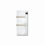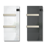 Finitions de haute qualité, surface brillantes et satinées qui se marient avec des associations élégantes, afin que votre salle de bain soit chaque jour une expérience unique. Vous obtiendrez la température que vous souhaitez rapidement, tandis que simultanément la surface frontale en verre se réchauffe et, grâce à ses propriétés, accumule la chaleur, la restituant par rayonnement, et engendrant une sensation de confort prolongée et enveloppante. Les dimensions sont compactes, pour un élément d’ameublement, facile à placer dans n’importe quel contexte grâce à un encombrement de seulement 40 cm. Les commandes sont faciles à atteindre, comprendre et actionner. Disponible dans une double combinaison de couleurs, la plus classique, le blanc glacé, ou le gris anthracite moderne, couleurs toutes deux exaltées par l’élégante combinaison des barres porte-serviettes couleur sable.
